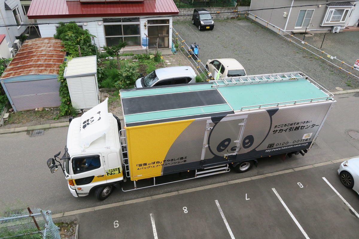 引っ越しの日。荷物を搬出。ついにこの日が来てしまいました。8月で北見での単身赴任は終わり。複雑な心境です。たくさんお世話になった方々、仲良くしていただいた方々、本当にありがとうございました。最初は冬長い、家(奈良)から遠い、寒い、と不慣れなことも多く不安で不便な思いでしたが、2年目からはとても楽しい北見生活でした。第二のふるさとかな。ほんと。At last this day of moving came. A truck came and carried the baggage out. I finished a life being by myself at Kitami at the end of August. It was a complex feeling as a lot of things had happened to me in a good and bad manner. Thank you very much for those who took care of me and those who got along well. I was nervous and the life was inconvenient because there were many unfamiliar things such as long winter at first, Kitami far from Nara, cold, etc. From the second year I had a great fun of Kitami life. It is my second hometown, really.