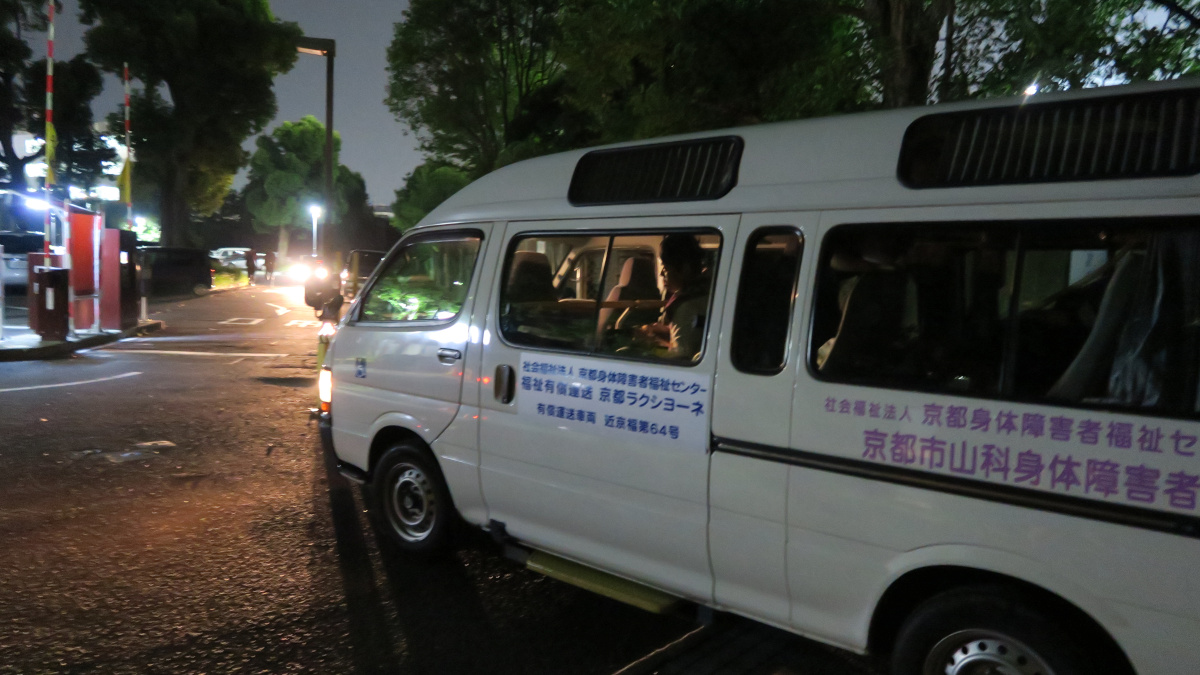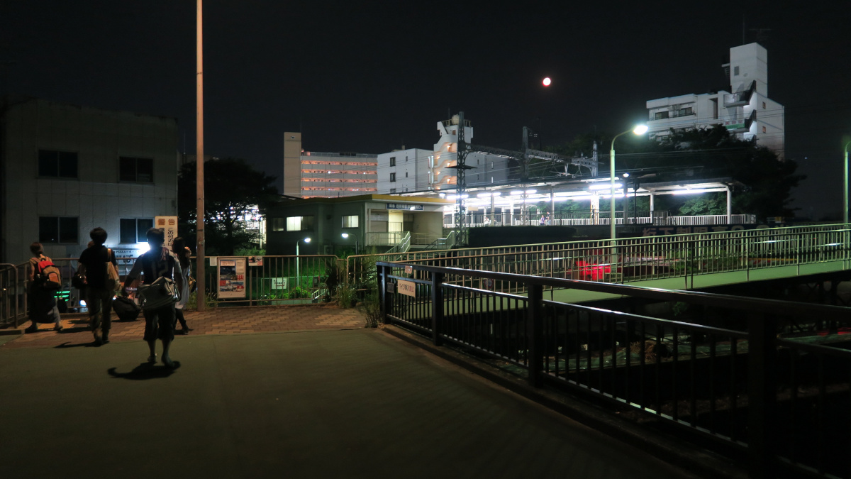 ↓阪急西京極駅。勝ちに酔いしれるサンガサポータも