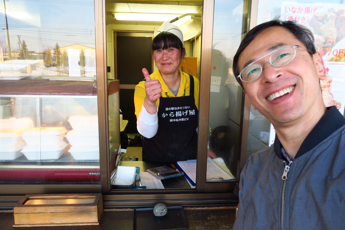 ↓中札内 道の駅にあるから揚げ屋さんで。大ビナモモをいただきました。